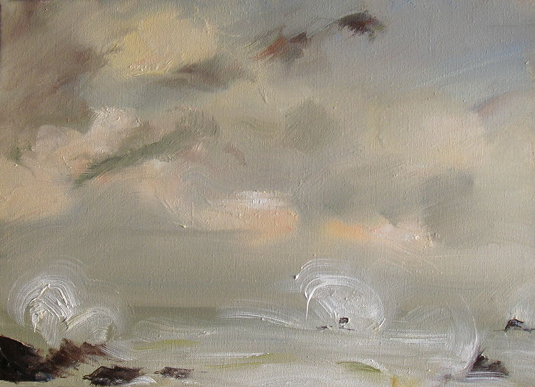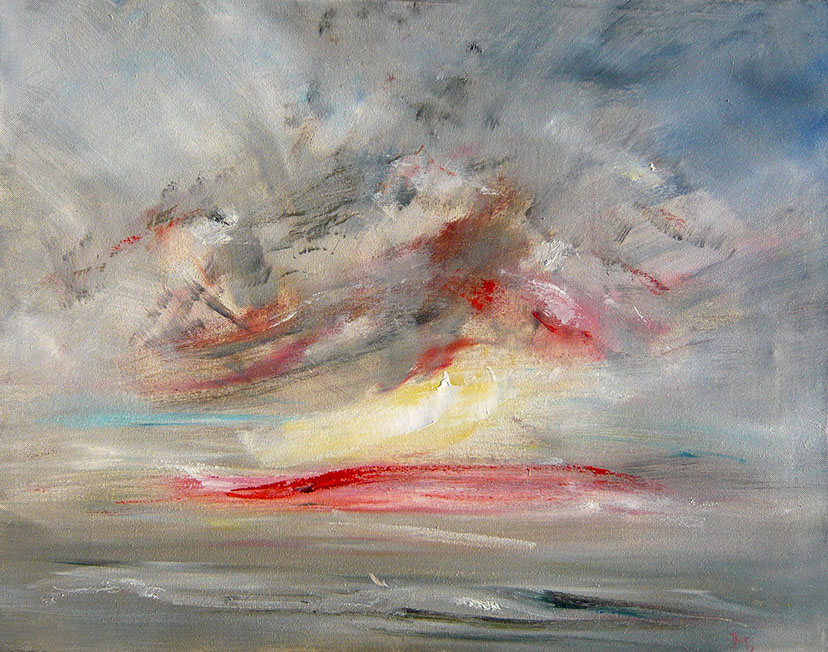 « Je suis émerveillée par la fantaisie de la nature, mais je n’oublie pas sa géométrie profonde… » On trouve cette géométrie structurelle dans la composition de ses bouquets et dans ses ciels posés sur des lignes d’horizon vaporeuses, toujours au service de la beauté.