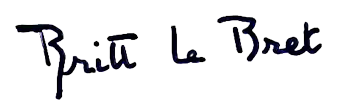 « Chaque tableau de Britt Le Bret permet d'imaginer la vie, la vie idéale. Dans ses portraits de femmes, les yeux vous fixent et vous devinez que les confidences vont suivre... Ses paysages suscitent des rêveries, des souvenirs, des orages lointains, ou proches. Ses œuvres représentent, dans leur totalité, un ton et une réalisation que Monsieur Degas eut apprécié. »
